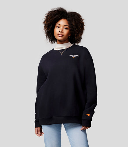 Achieve comfort, unrestricted mobility, and a bold aesthetic in our McLaren Long Sleeve Born To Race Oversized Sweatshirt – celebrating the rich history of McLaren and motor racing itself. Slick graphics at the front and back accompany the classic speedmark logo embroidered on your lower sleeve.