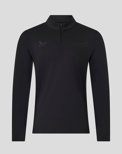 This unisex McLaren Formula One 1 Team Black On Black 1/4 Zip Midlayer combines sleek design with functional performance.