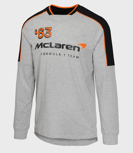 Mens McLaren 'On Fire' Long Sleeve Cotton T-Shirt - Grey/Black