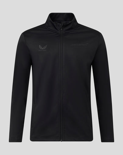 This unisex McLaren Formula One Team Black On Black Softshell Jacket combines sleek design with functional performance.