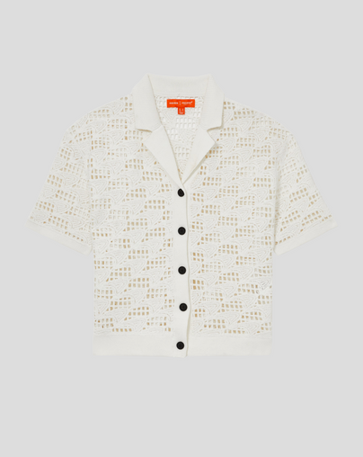 Reiss Womens Short Sleeve Crochet Cuban Shirt - White