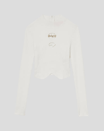 The Sandy crop top is finely ribbed and defined by bold front cut-outs—one accented with McLaren Formula 1 Team hardware and the other with a Speedmark logo.