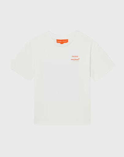 The Reiss Junior Short Sleeve Nakata Racing T-Shirt in white combines style and comfort for young motorsport enthusiasts.